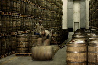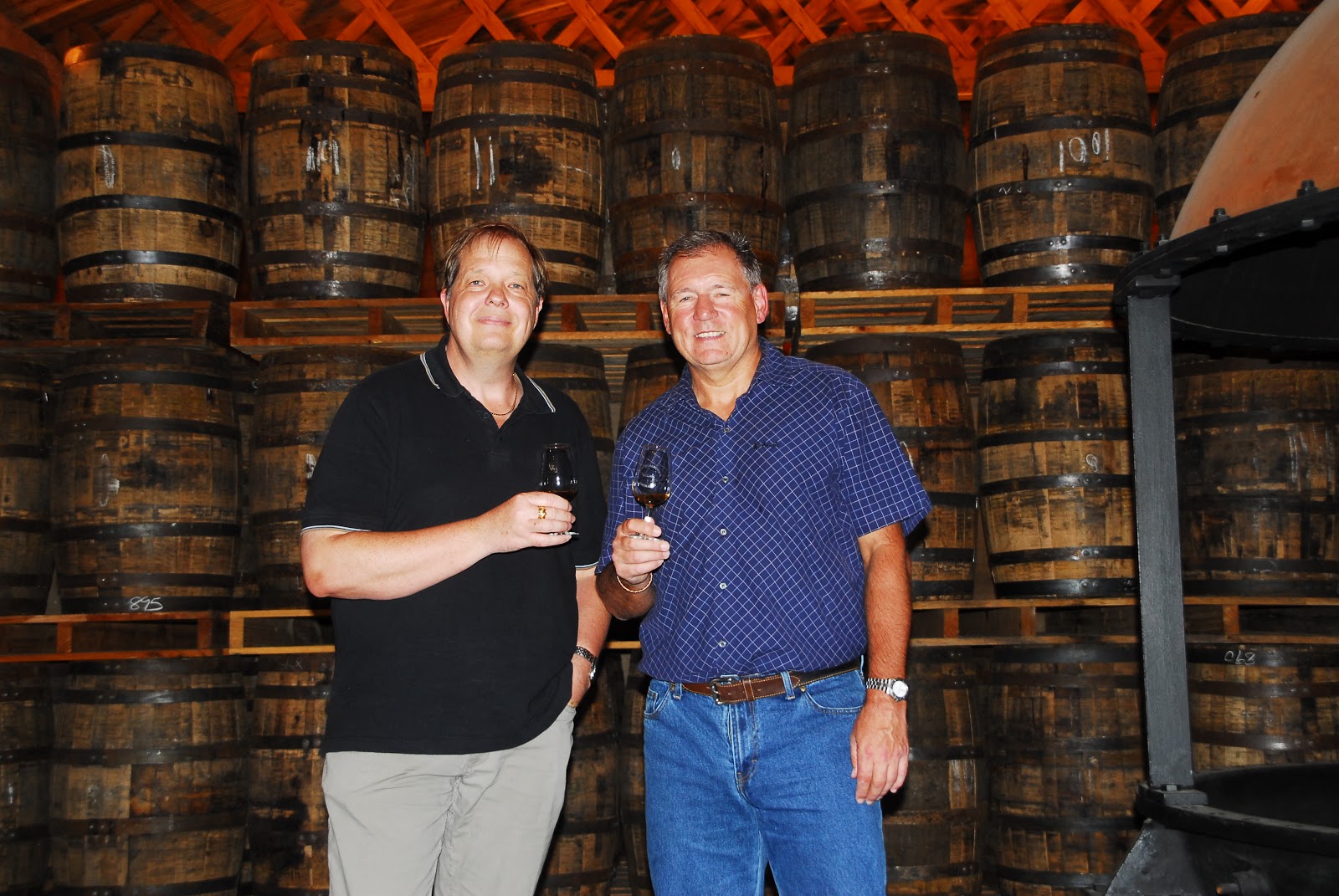 Besonders bemerkenswert war auch das im wahrsten Sinne umwerfende Aroma in den – nicht gekühlten (das könnte man nicht bezahlen) – Lagerhallen: der Angel’s share liegt aufgrund der höheren Temperaturen bei über 4% – im Vergleich zu 1-2% in Schottland!